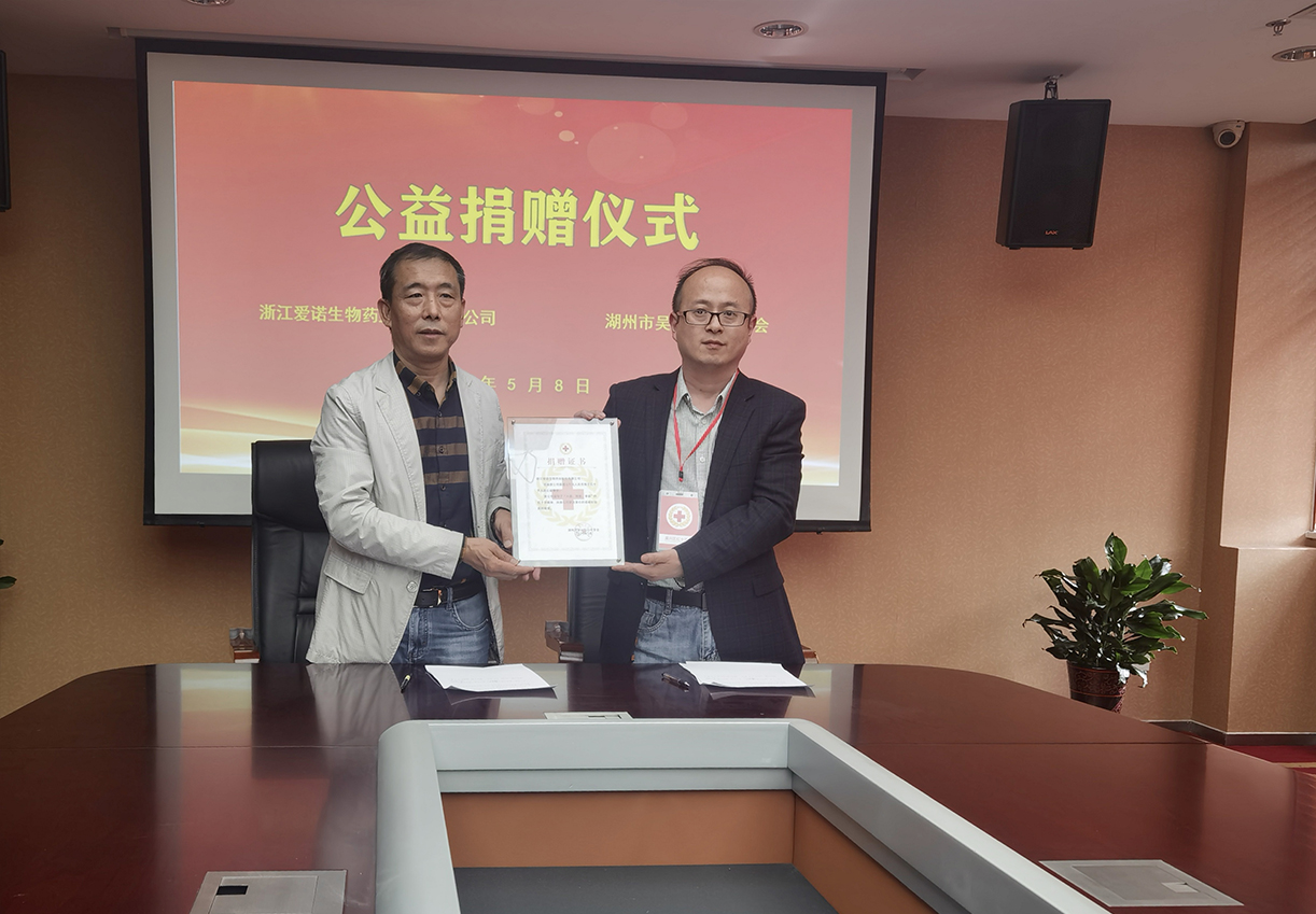 慈善是文明的標志,是人類愛心的展現。2023年5月8日是第75個世界紅十字日,為進一步深入貫徹落實習近平總書記關于紅十字事業的重要指示,弘揚“人道、博愛、奉獻”精神,5月8日下午浙江愛諾生物藥業股份有限公司與湖州市吳興區紅十字會在我司舉行了“吳興醫路同行”捐贈儀式,本次共捐款人民幣6萬元,將用于“培養優秀醫務人員,筑起百姓健康長城”公益項目。浙江愛諾生物藥業股份有限公司一直秉持“您的健康是我們最大的心愿”企業理念,在公益事業上,將繼續行動奉獻愛心,為慈善事業貢獻力量。