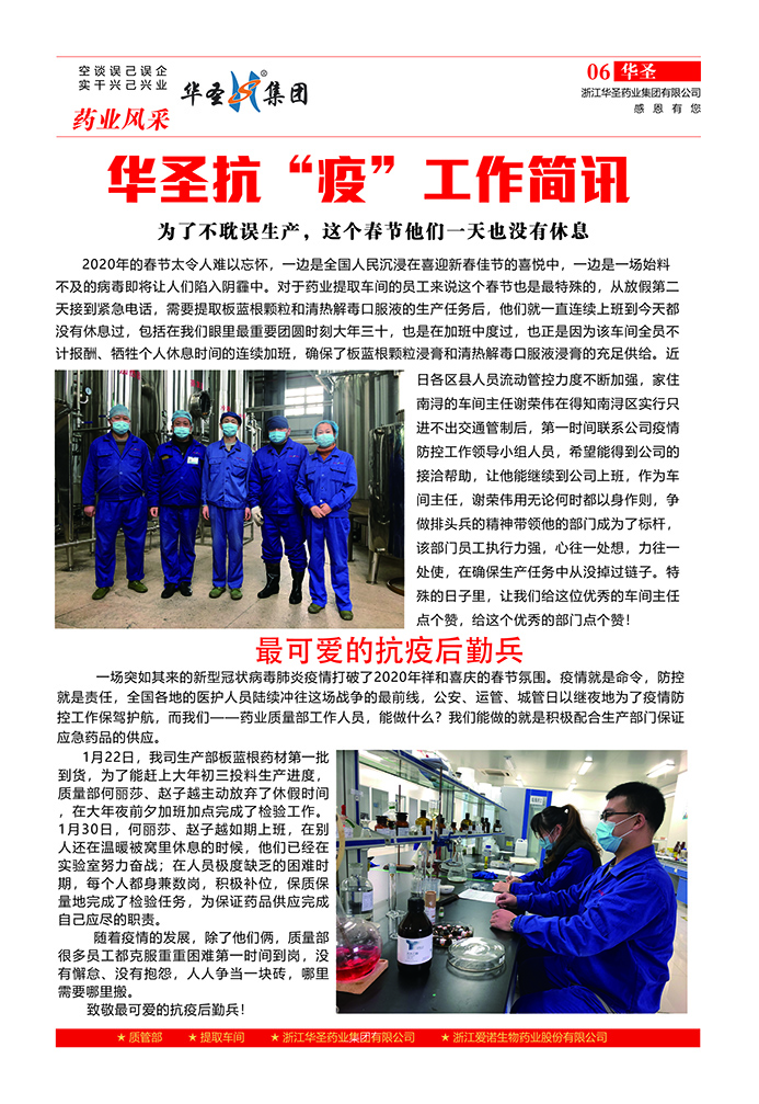 為了不耽誤生產,這個春節他們一天也沒有休息——華圣抗“疫”工作簡訊