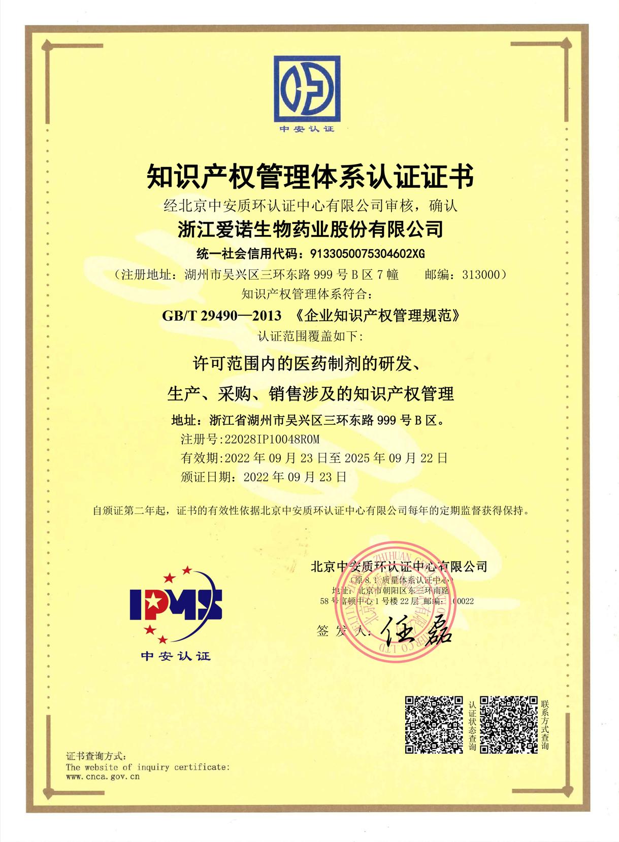 恭喜愛諾藥業(yè)通過知識產(chǎn)權管理體系認證